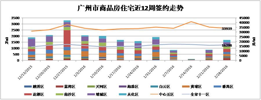 导言:2016年的政策信号来得比往年更早。1月份新增贷款额2.51万亿远超预期,2月份首付、税费、贷款利率优惠力度加大,新政频密出台,意旨去库存、稳经济。广州楼市方面,全市签约量价齐升,天河价格升幅度大。开盘方面,两项目开盘,一项目加推,其中番禺奥园国际中心入市热售八城,黄埔碧兰轩入市成交约四成,黄埔万科山景城加推半小时售罄,显示广州楼市热度不均。据中地行市场部监控统计,预计本周未广钢葛洲坝保利曼城开盘,南沙越秀滨海御城加推。