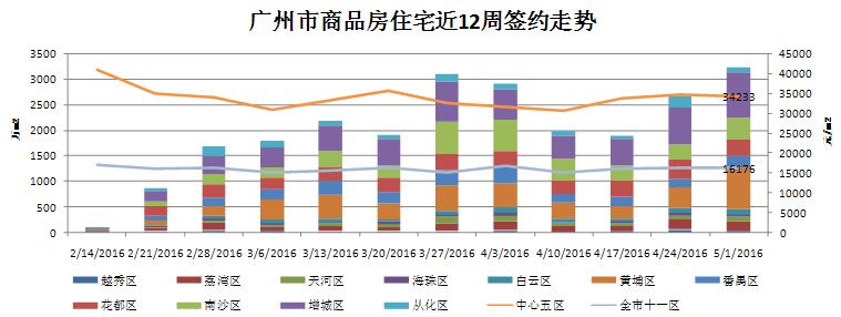 据中地行市场研究部监控阳光家缘,上周全市网签(2016.04.25-2016.05.01)录得全市商品房住宅: