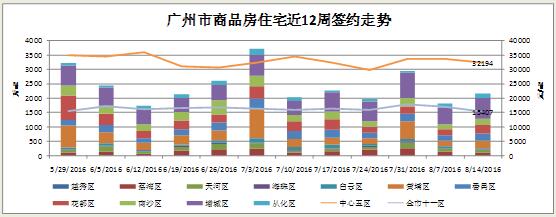 据中地行市场研究部监控阳光家缘,上周全市网签(2016.08.08-2016.08.14)录得全市商品房住宅:
