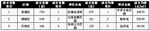 项目排行方面,番禺区的祈福名家阁以278套的绝对优势位居第一,黄埔区的实地青藤花园和增城区的保利立方花园则分别以131套和123套的成交数位居二三位。