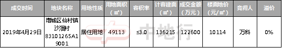 热点——万科竞得增城仙村宅地,楼面价10114元/㎡